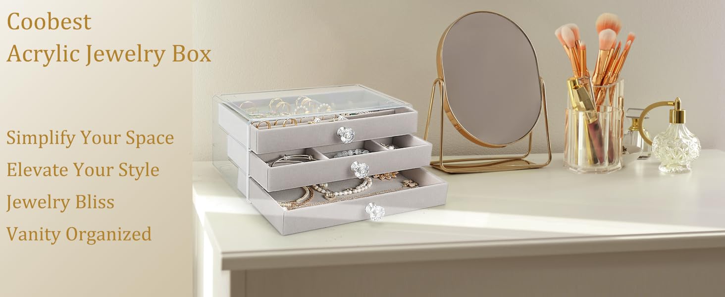 Godboat 3 Drawer Jewelry Holder Organizer Box, Jewelry Boxes & Organizers with Earring Organizer, Jewelry Holder Box, Clear Jewelry Organizer Box for Jewelry Storage, Valentines Day Gift